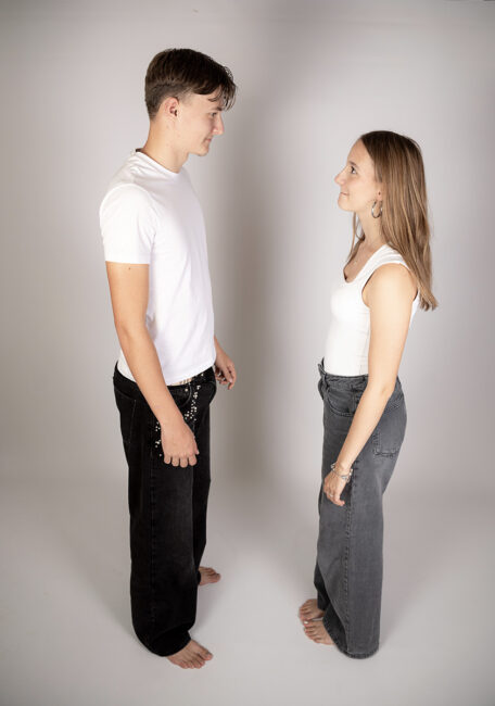 Am besten Kleidung, in der ihr euch wohlfühlt und die farblich harmoniert.
