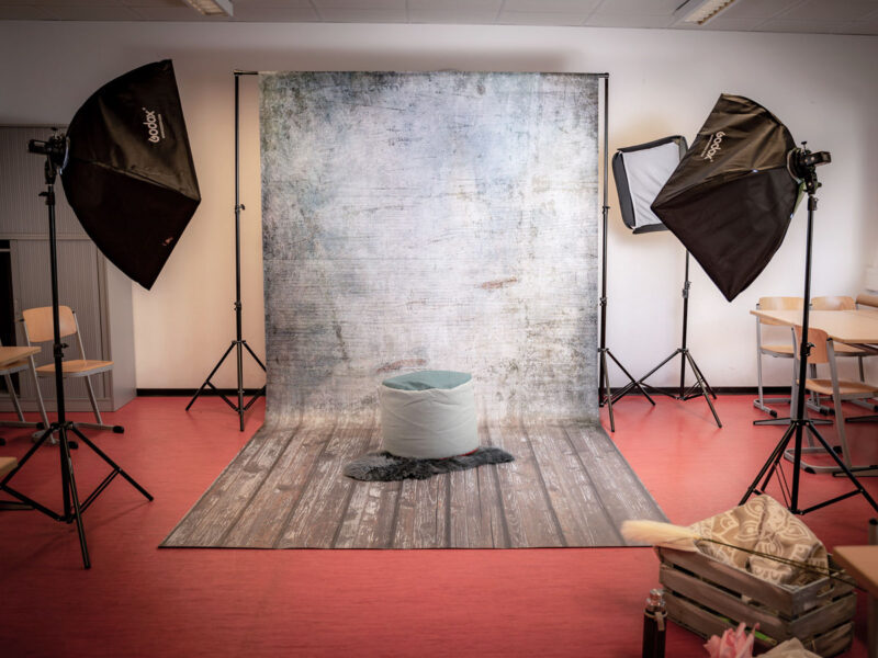So kann’s aussehen, wenn wir in Schulen oder Kitas unterwegs sind: Wir bauen unsere Fotosets je nach Ort und Zeitplan ganz individuell auf. Auch bei den Posen gibt’s keine starren Vorgaben – wir schauen, was passt, und gestalten das Shooting flexibel und mit einem guten Gespür für die Situation. Kein Termin läuft wie der andere – und genau das macht’s aus!